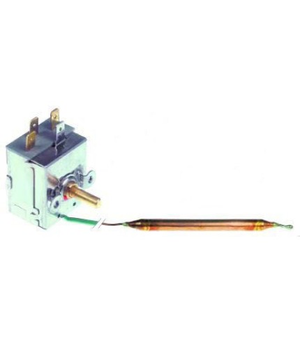 Termostat de control 0-90◦C, contact in comutatie 1CO, 15A, dimensiuni senzor 6,5x90mm, lungime capilar 1000mm(izolat 900mm), diametre ax 6x4,6mm